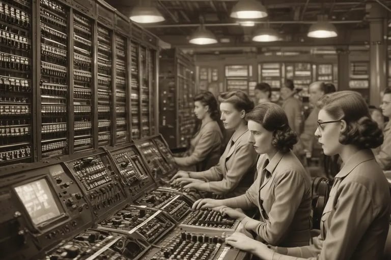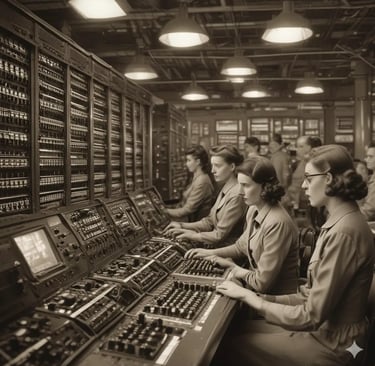 • Conexão de cabos: operadores ligavam painéis específicos para criar caminhos de dados entre componentes eletrônicos.