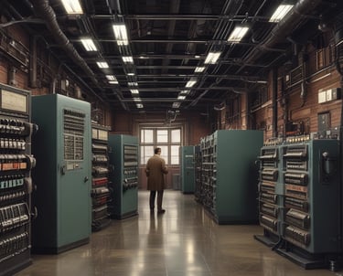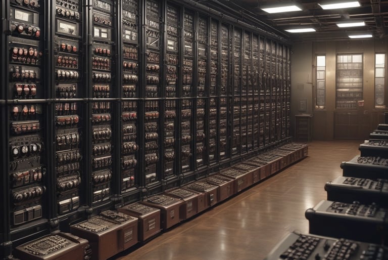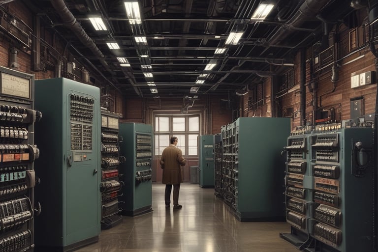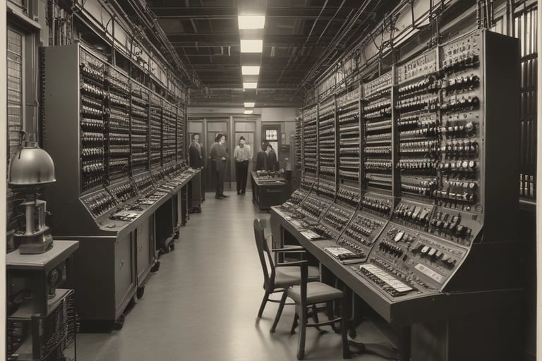 Mas aqui está o detalhe que poucos contam: não havia memória programável. Cada novo cálculo exigia reconfigurar fisicamente a máquina, ligando cabos coloridos em painéis e ajustando centenas de chaves manuais. Um único programa podia levar dias para ser montado. Era como reescrever o DNA de um robô a cada nova tarefa.